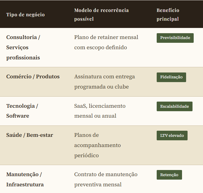 Independentemente do segmento, é possível criar alguma camada de recorrência no modelo de negócio: